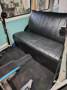 Got the new back seat in – Naomi from the MG Car Club did rebuilt the back seat in black to match the new rugs and front seats.